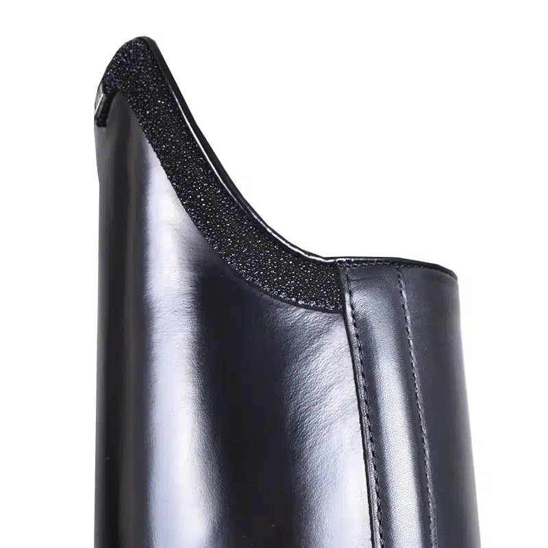 Ces bottes sont (partiellement) fabriquées en cuir verni. Ce type de cuir étant plus sensible aux dommages, il peut se ternir avec une utilisation fréquente ou un entretien inapproprié. L'usine De Niro peut réparer certains dommages, mais veuillez noter que la garantie sur les bottes en cuir verni est plus limitée. De Niro recommande de n'utiliser des bottes en cuir verni que pour les compétitions et les stages.