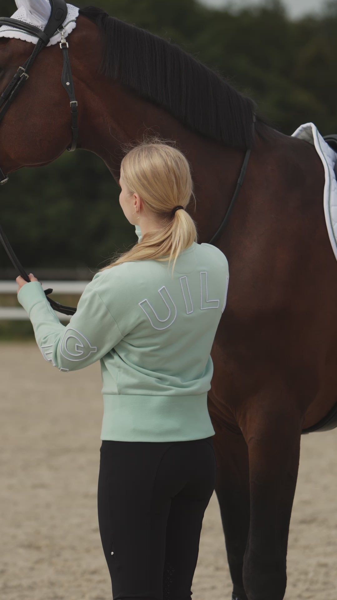 La large bordure côtelée à la taille et les poignets côtelés assurent un ajustement agréable et flatteur. Le dos du sweat est décoré d’un grand lettrage Equiline, apportant une touche sportive et distinctive au design.