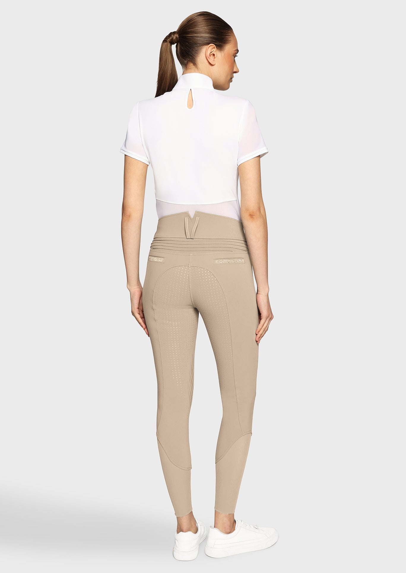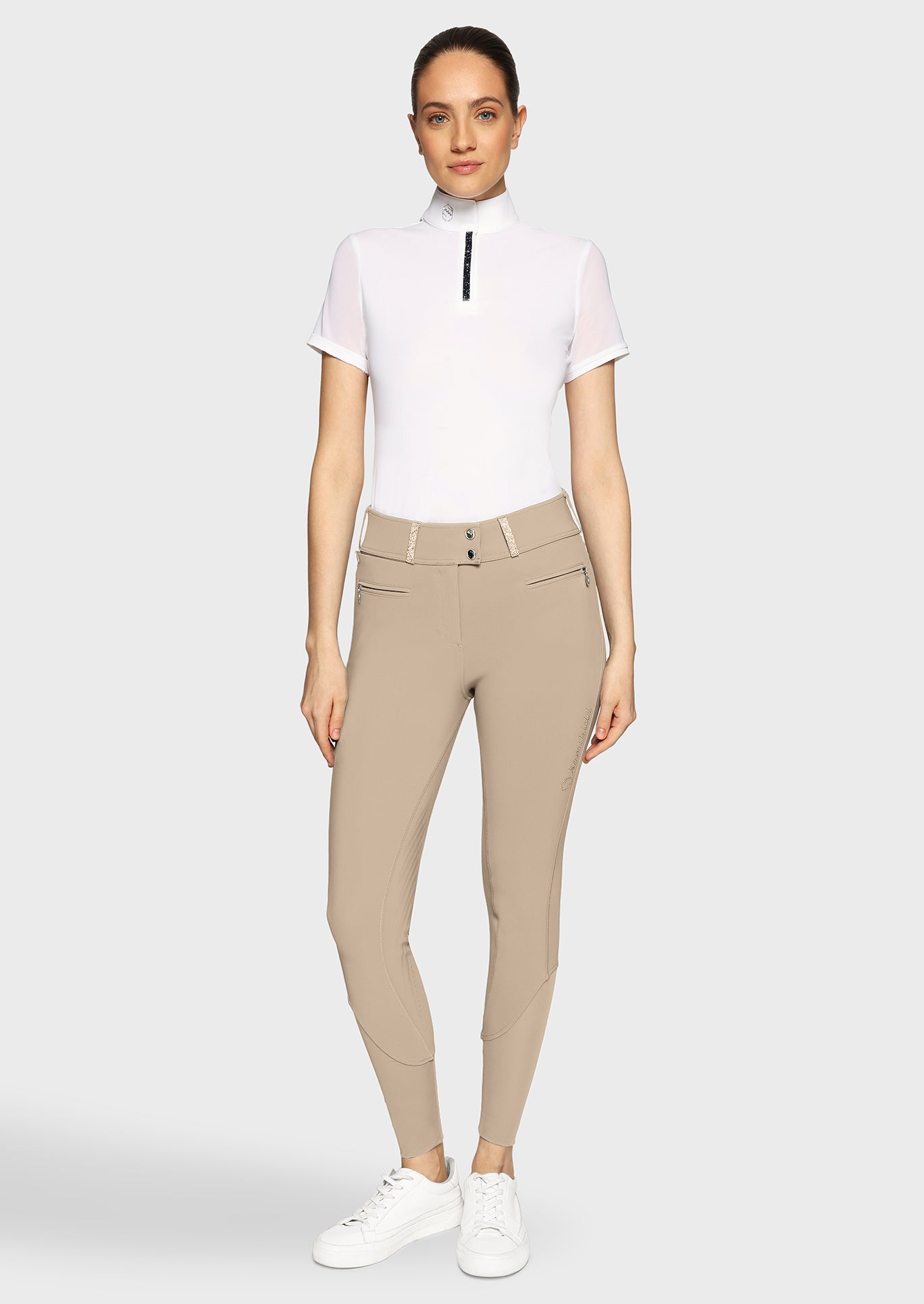 Le pantalon est confectionné dans un tissu technique italien de haute qualité, respirant, extensible et résistant. Le Claranova offre ainsi un confort durable, même lors des entraînements intensifs ou des journées de compétition. Les détails luxueux, tels que les inserts Swarovski Crystal Fabric sur les passants de ceinture et les poches arrière, apportent une touche d’élégance subtile. Les plis signature Samshield à l’arrière soulignent le raffinement du design.
