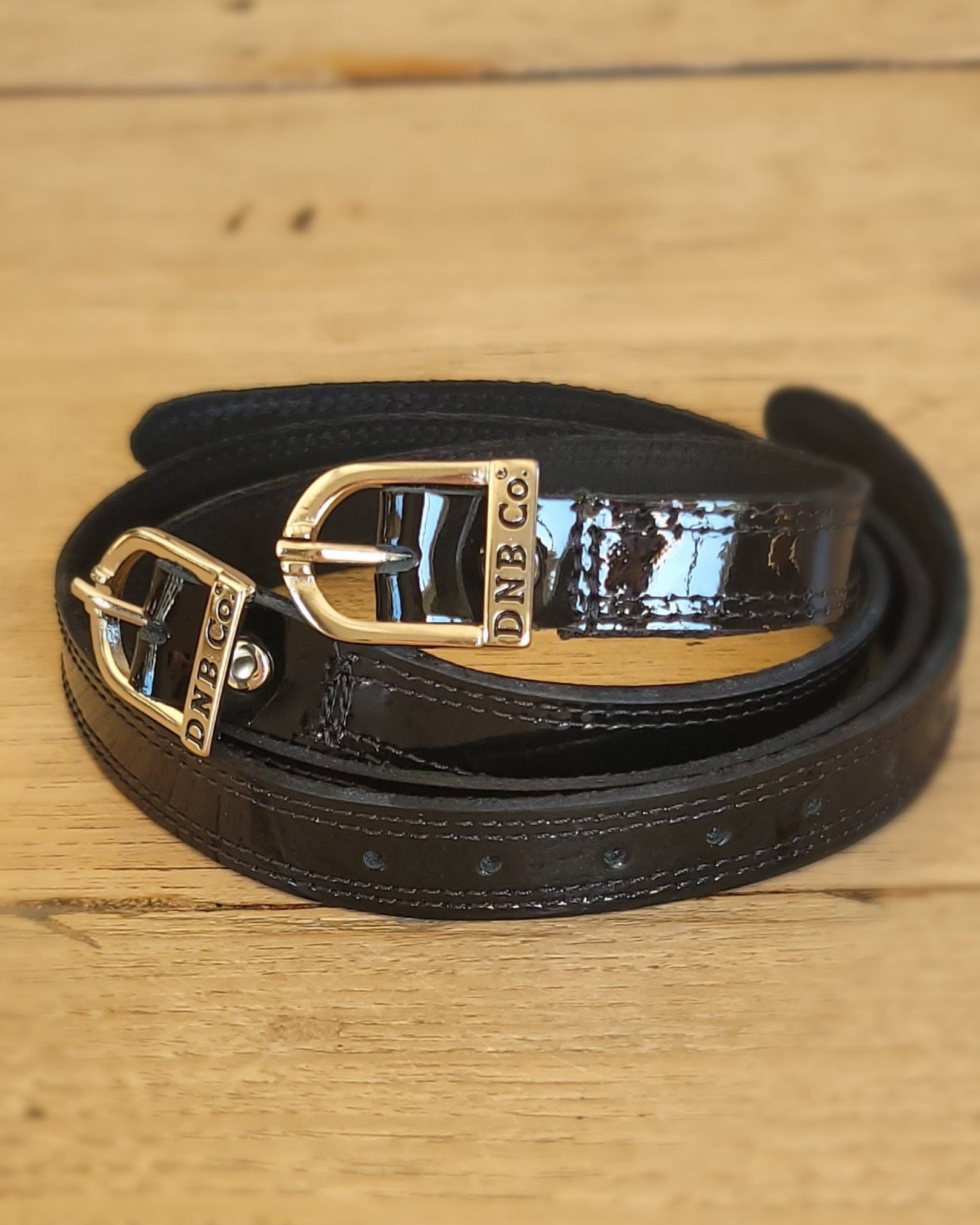 Le cuir verni offre un aspect luxueux et s’accorde parfaitement avec des bottes d’équitation classiques ou modernes. Grâce aux boucles robustes de couleur argent avec le logo DNB discret, les courroies d’éperons sont faciles à ajuster et restent bien en place pendant l’équitation.