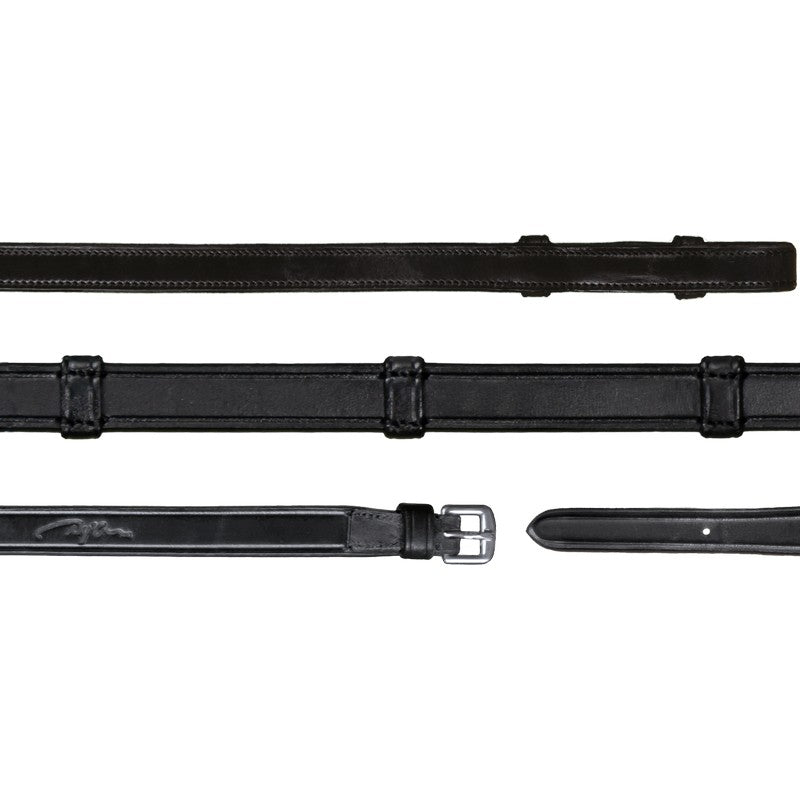 Menu Dyon Dressage 5/8 (16mm) rênes en cuir avec 7 arrêts en cuir noir