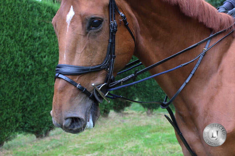 Ce modèle renouvelé du Full Jump Assist est fabriqué en cuir DD, avec une finition luxueuse et une corde qui coulisse plus facilement dans les anneaux du mors, offrant ainsi encore plus de confort au cheval. Les rênes sont en cuir lisse.