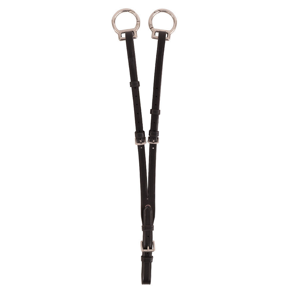 La fourche martingale TRUST Helsinki peut être ajustée à trois endroits pour un ajustement optimal. La fourche est ouverte et s'adapte aux harnais de poitrine TRUST. La sangle de fixation au saddle est équipée d'une boucle à rouleau, ce qui permet une fixation facile au harnais de poitrine.